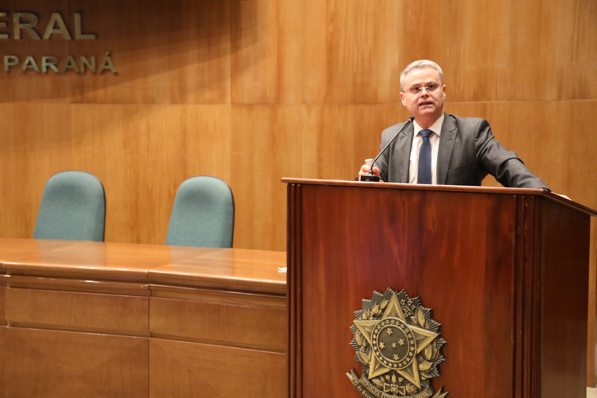 Também compuseram a mesa, o juiz federal José Antonio Savaris, diretor do Foro da Seção Judiciária do Paraná (SJPR); a procuradora de Justiça, Vivian Patrícia Fortunato, representando o Ministério Público do Paraná (MPPR); o advogado Sandro Gilbert Martins, representando a Ordem dos Advogados do Brasil do Paraná (OAB-PR); o desembargador Fabio André Santos Muniz, do Tribunal de Justiça do Paraná (TJPR); a procuradora-chefe da Procuradoria Regional da República da 4.ª Região, Ana Luisa Chiodelli; e a defensora pública federal Lídia Carolina Pinotti Rodrigues.