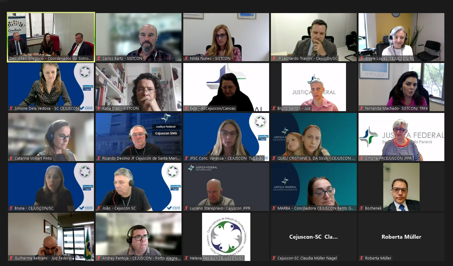 A solenidade de abertura da Semana Nacional da Conciliação no TRF4 contou com participações remotas pela plataforma Zoom (Imagem: Sistcon/TRF4)