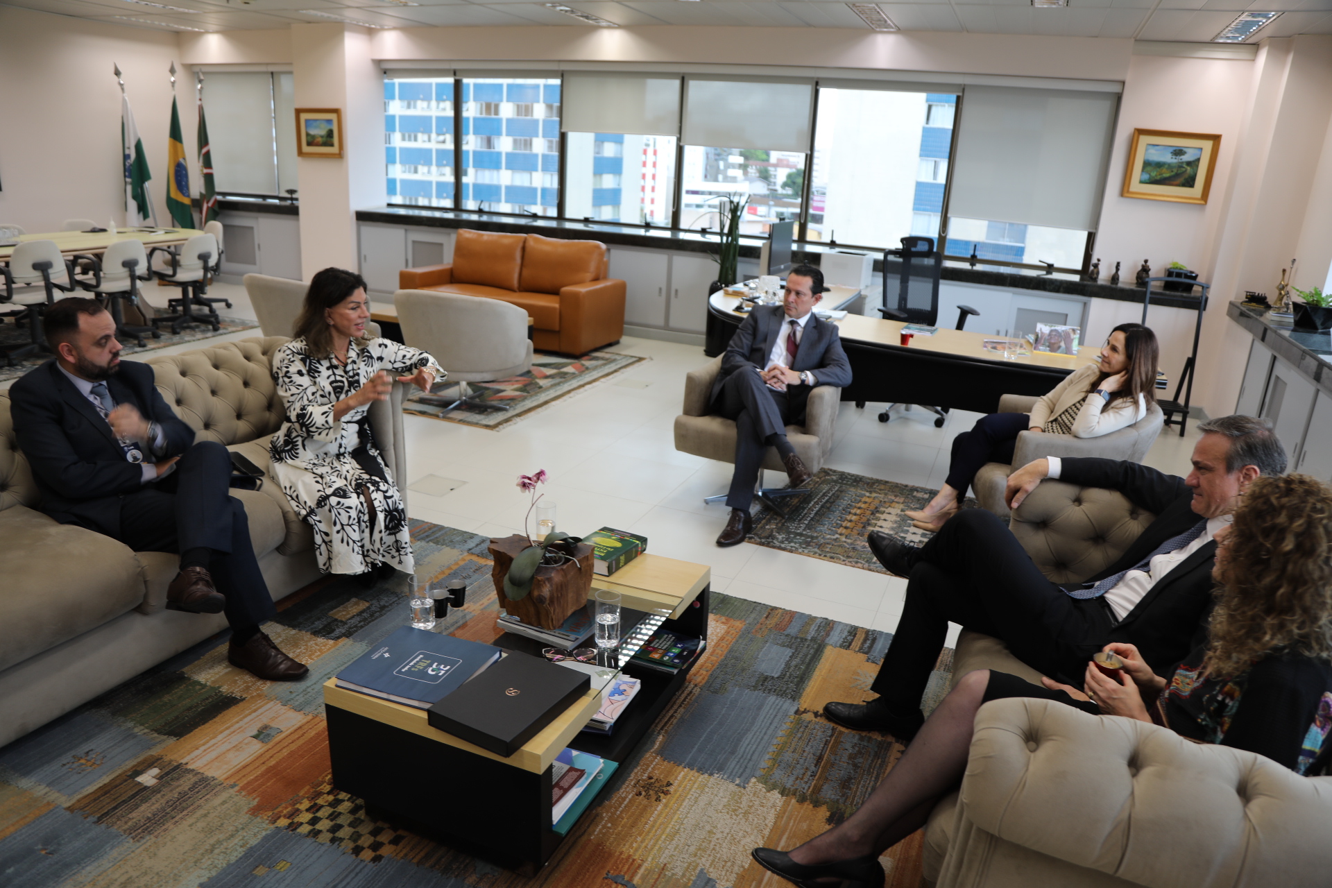 A desembargadora Joeci Camargo, do TJPR, reunida com a direção do Foro da SJPR e juízas federais da instituição (Comsoc/JFPR)
