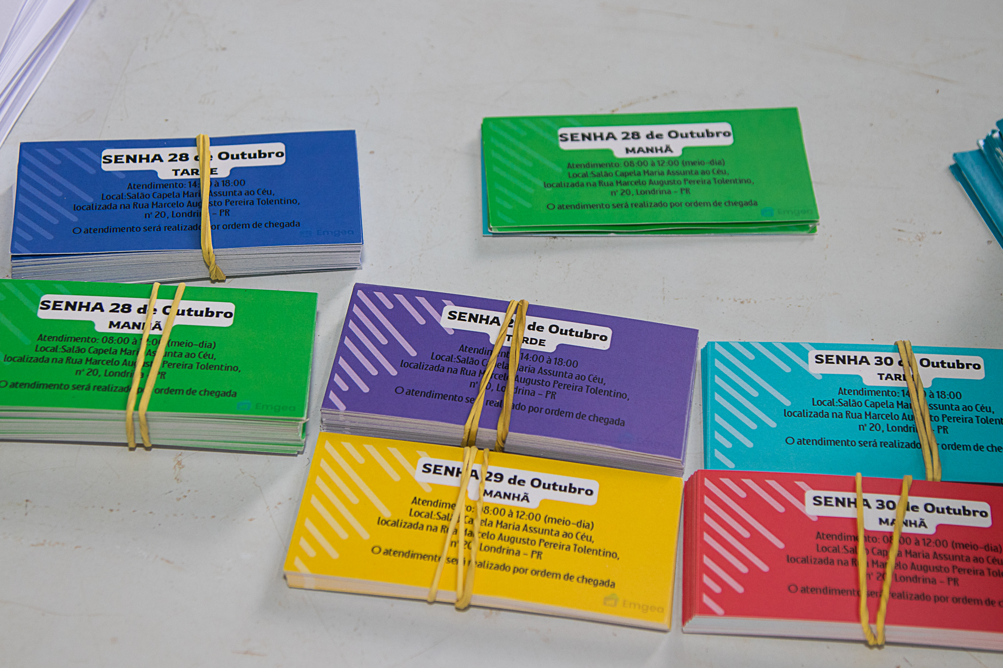 Senhas de atendimento do mutirão ordenados por dia de atendimento. Foto: Paulo Povedano (Foto: Paulo Povedano)